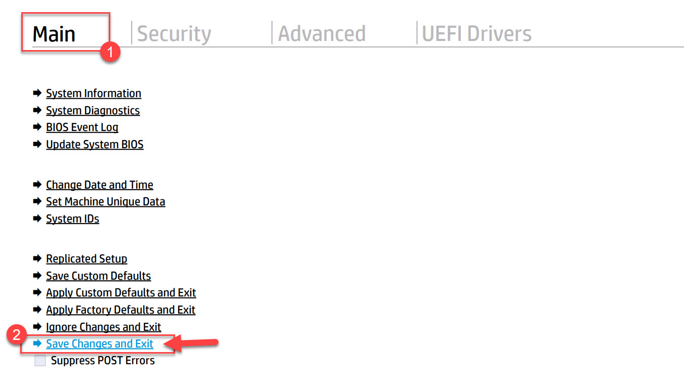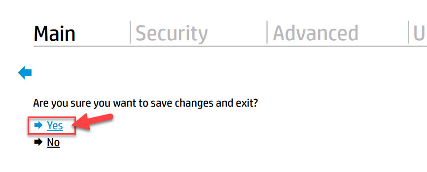 Main" e quindi "Save Changes and Exit" ; successivamente clicchi su "Yes" per salvare i passaggi svolti e uscire dal BIOS.