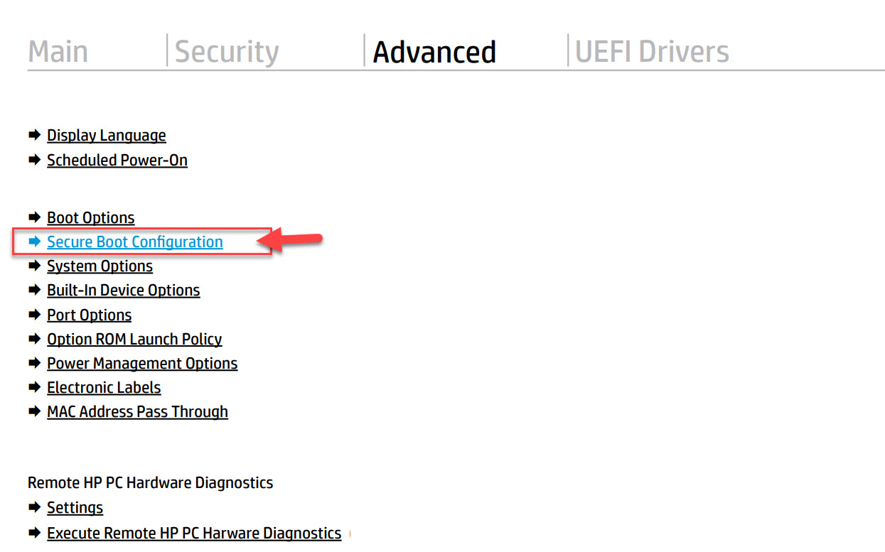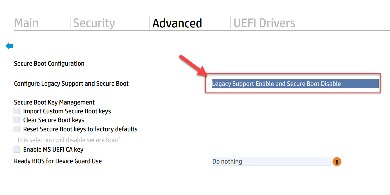 Disattivare Secure Boot deaktivieren: scelga l'opzione "