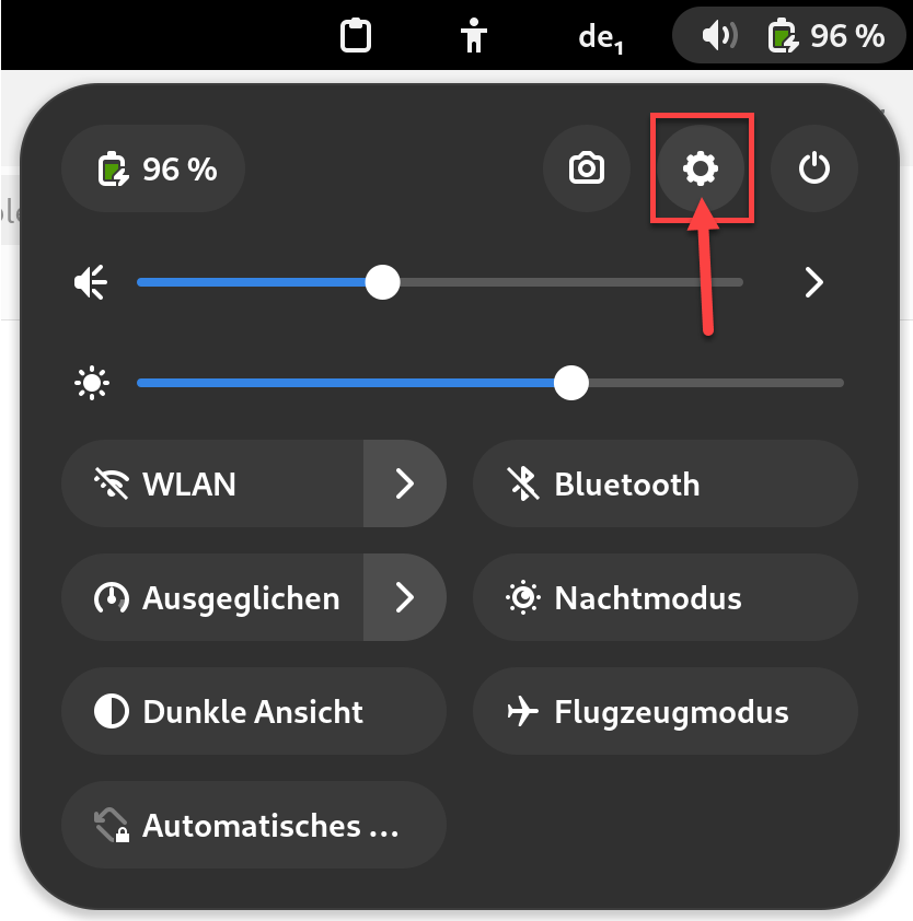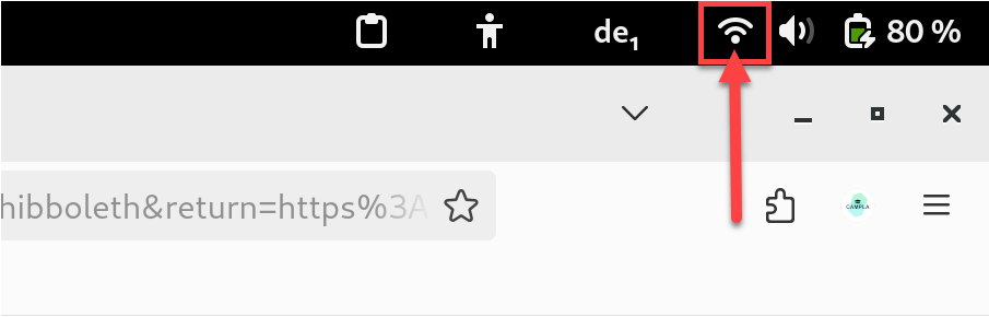 Aprire le impostazioni WLAN: clicchi con il tasto sinistro del mouse nell'area in alto a destra della schermata, come mostrato nell'immagine di seguito riportata: