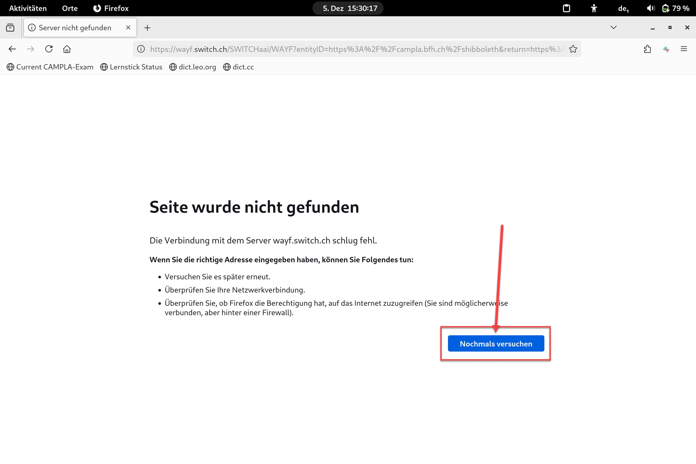 Nochmals versuchen". A questo punto dovrebbe essere caricato il sito web CAMPLA.